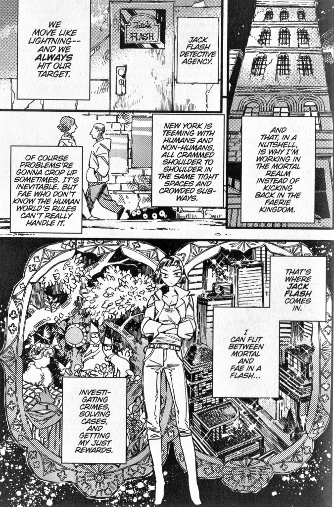 As for the story, I love urban fantasies, especially ones that try and incorporate the magical realm in with the human, faeries and humans living side by side blissfully unaware. Jack Flash takes one of my favorite universes and brings it into a more urban environment and a new continent. The rules here are a bit different, but just as interesting. I love seeing how they both navigate conflicting realms, almost acting as a go-between or liaison. With the added layer of mystery, this manga really pulls you in.