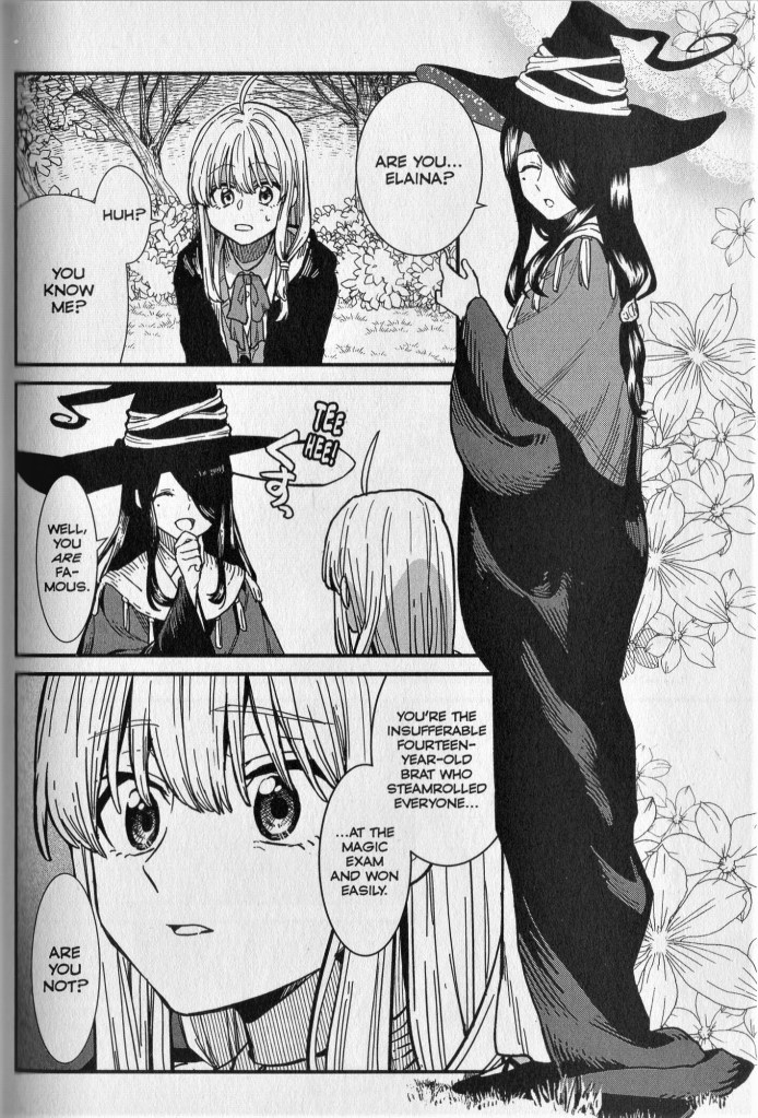 For a manga about traversing the world, I kind of expected the backgrounds and worlds to be paid a lot of detail. However, I think Shiraishi and Nanao have chosen to go a more character-driven route and have focused on the character designs and people who make up the worlds she visits. I don’t necessarily have a problem with this. I think Nanao and Azure have done a great job in creating and designing the characters to fit into their world. I especially love the design of Elaina’s teacher, the Stardust Witch. She reminds me a bit of the characters in Little Witch Academia. Elaina’s design is also really nice. I think how Azure created her really well to show the readers that she is clearly a witch. Her large hat and clothing that looks like a magic school uniform paints a clear picture that she is a magical practitioner.