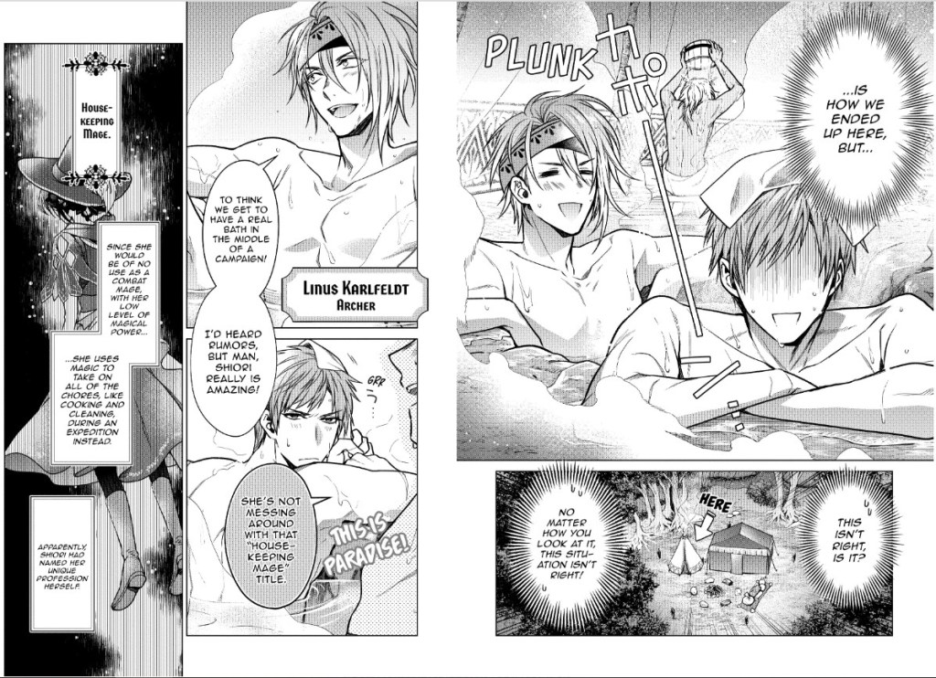 The story begins when A-Rank adventurer Alec meets the housekeeping mage, Shiori, as he puts together an expedition. Shiori has too little magic to be a battle mage, and so focuses on taking care of all the chores and cooking that comes with these expeditions. Because of her skill and hard work, all of the groups she has gone with have done exponentially better than those that didn’t have her help. And now Alec finds out just how effective she is with her magic and skills, and in the process, discovers the troubling backstory that led her to this profession.