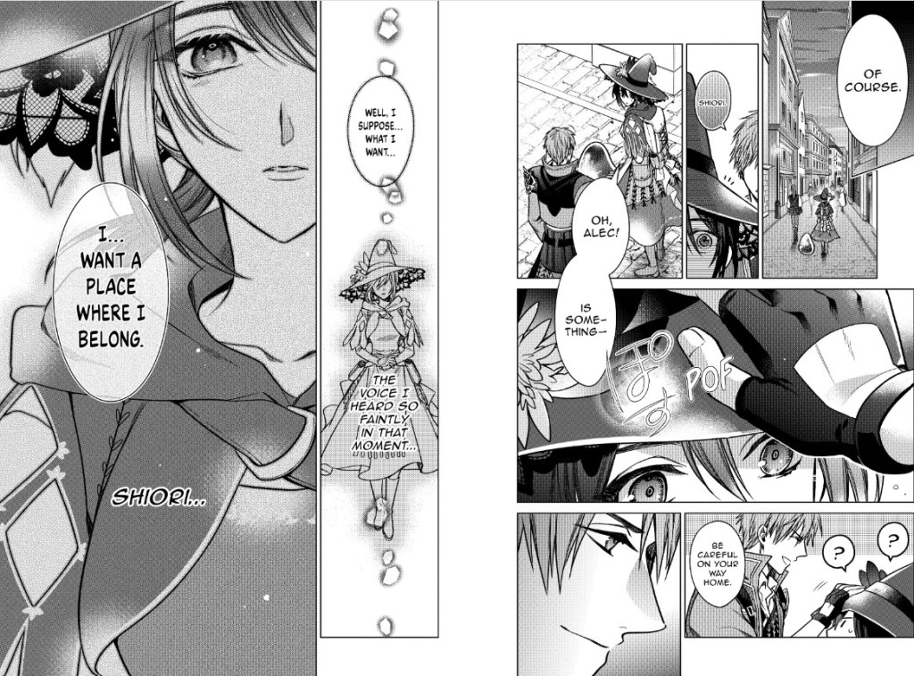 As for many isekai, belonging plays a central role in the themes of this manga. While Shiori has come into her magic and has been supported by many people along the way, she still has had trouble finding a place just for her. We see that wish at the center of her goals and longing since she can no longer go back to Japan. Alec, in his knightly capacity, sees someone he can help and protect. Combined with the emotional draw he feels from her, their relationship makes a really sweet story of overcoming trauma and finding your own family and place in a new world. I’m really looking forward to seeing how this all plays out and how the mangaka unravels the story for us.