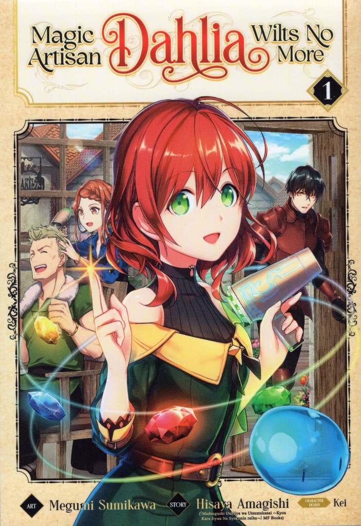 Magical Artisan Dahlia Wilts No More follows the life of Dahlia, who has been reincarnated into this world after dying from overwork in Japan. Her father happens to be a leading magical artisan, a profession that uses magical and magical items to create new technology, and she quickly takes after him, learning everything she can. Aided by her memories of her past life, she sets out to create new things the people of her world have yet to imagine. However, she finds herself limited by her status as a woman when her father arranges a marriage between her and his senior apprentice, setting off a series of events that leads her to a quest to better her life and create new ideas for herself again.